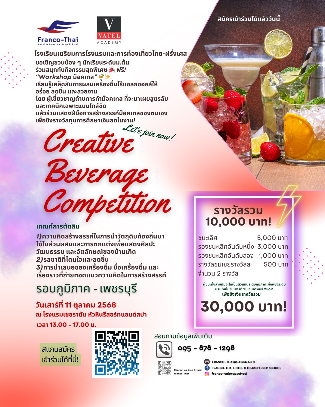 Learn the secrets to crafting delicious, refreshing, and gorgeous non-alcoholic drinks from our expert mixologists! They’ll spill the beans on their top techniques and recipes, and you’ll get to show off your skills and creativity! Plus, you’ll get to compete for a scholarship worth over 100,000 baht! But wait, there’s more!